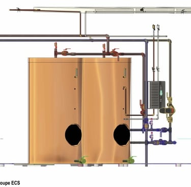 Etude et modélisation 3D d'un système de production d'ECS alliant performance énergétique et durabilité.