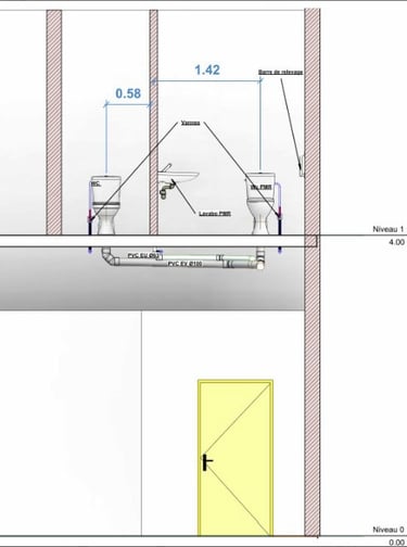 Dimensionnement et positionnement des équipements sanitaires pour répondre strictement aux normes d’accessibilité (loi 2005).