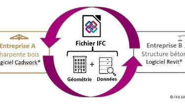 Dans le cadre d’un projet BIM chaque intervenant va utiliser un logiciel de modélisation BIM spécifique à son métier (architecture, structure, plomberie-CVC) afin de représenter en 3D des éléments de construction et d’y associer des informations.